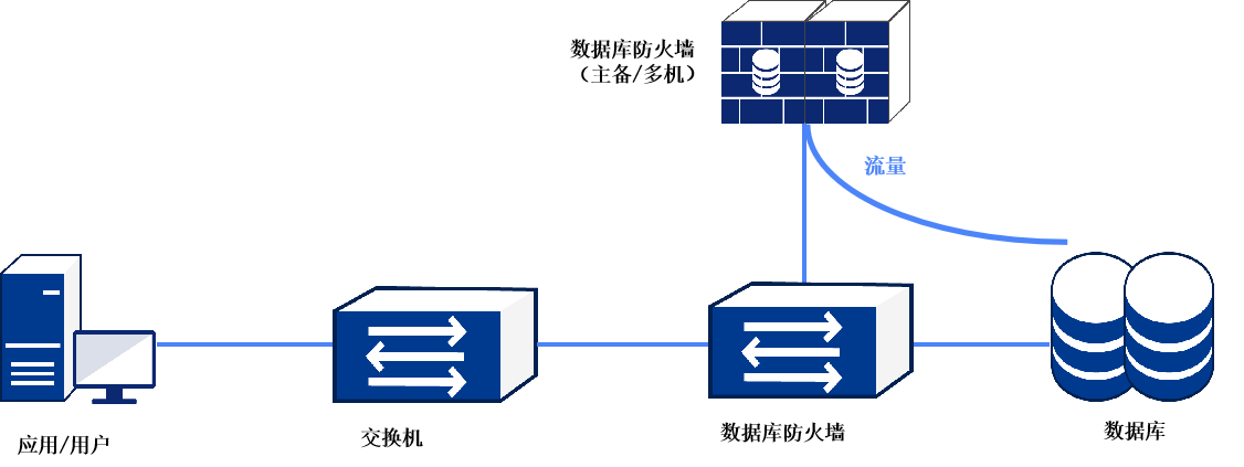 Êý¾Ý¿â·À»ðǽÒÔÍøÇÅÐÎʽ´®½ÓÔÚÓû§ÓëÊý¾Ý¿âÖ®¼ä£¬¼È¿ÉÒԳ䵱͸Ã÷Íø¹Ø¾ÙÐÐ͸Ã÷´«Ê䣬ÓÖ¿ÉÒÔ´úÀíÓû§»á¼ûÊý¾Ý¿âµÄËùÓÐÐÐΪ£¬µ±¿Í»§¶ËÖ±½ÓʹÓÃÊý¾Ý¿âµØÖ·ºÍ¶Ë¿Ú»á¼ûÊý¾Ý¿âʱ£¬Êý¾Ý¿â·À»ðǽ½«¿Í»§¶ËÇëÇó°üת·¢µ½´úÀí¶Ë¿Ú£¬Êý¾Ý¿â·À»ðǽÎüÊÕµ½Êý¾Ý°ü´¦Öóͷ£ºóת·¢¸øÊý¾Ý¿â ¡£